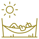On garden TERRACES or around a heated pool in the Mediterranean sun, under a blue sky.